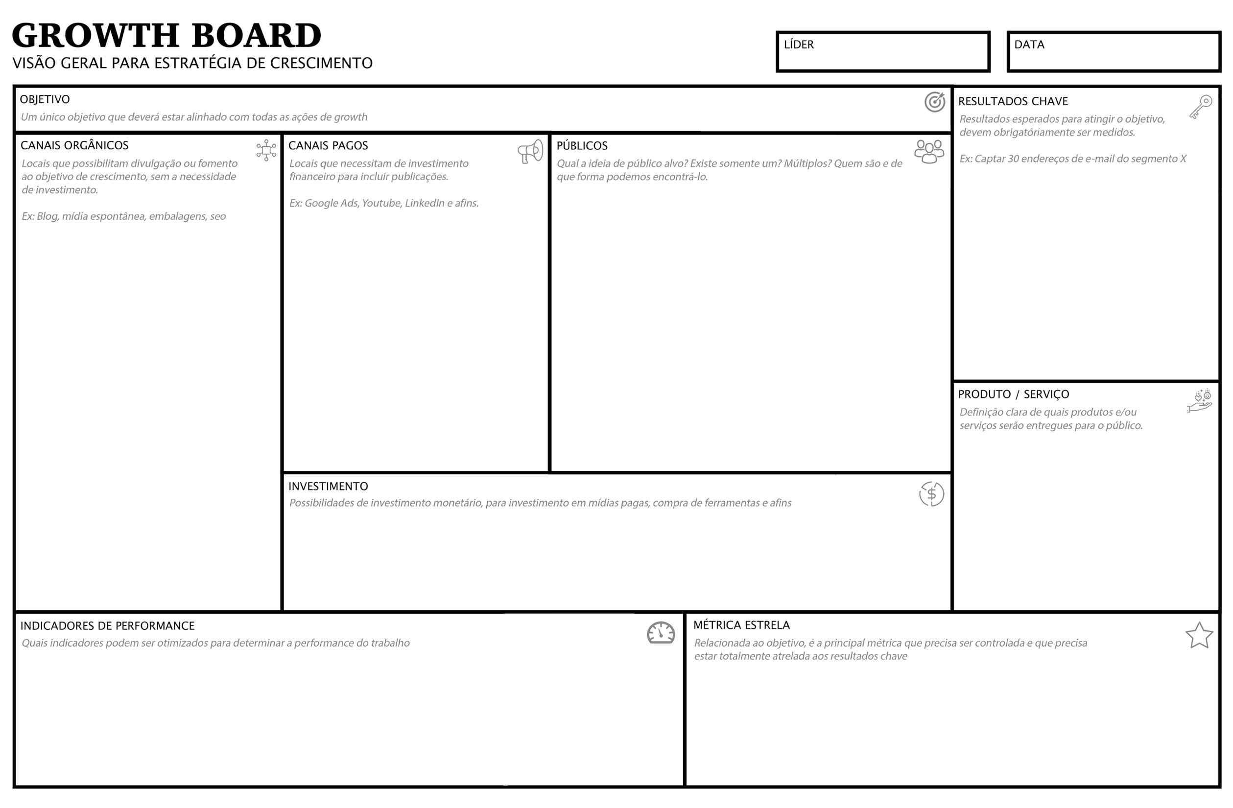 Preencha com seu MELHOR e-mail e receba o growth board completo, com PDF para impressão em alta resolução em folha A1 ou utilização virtual.